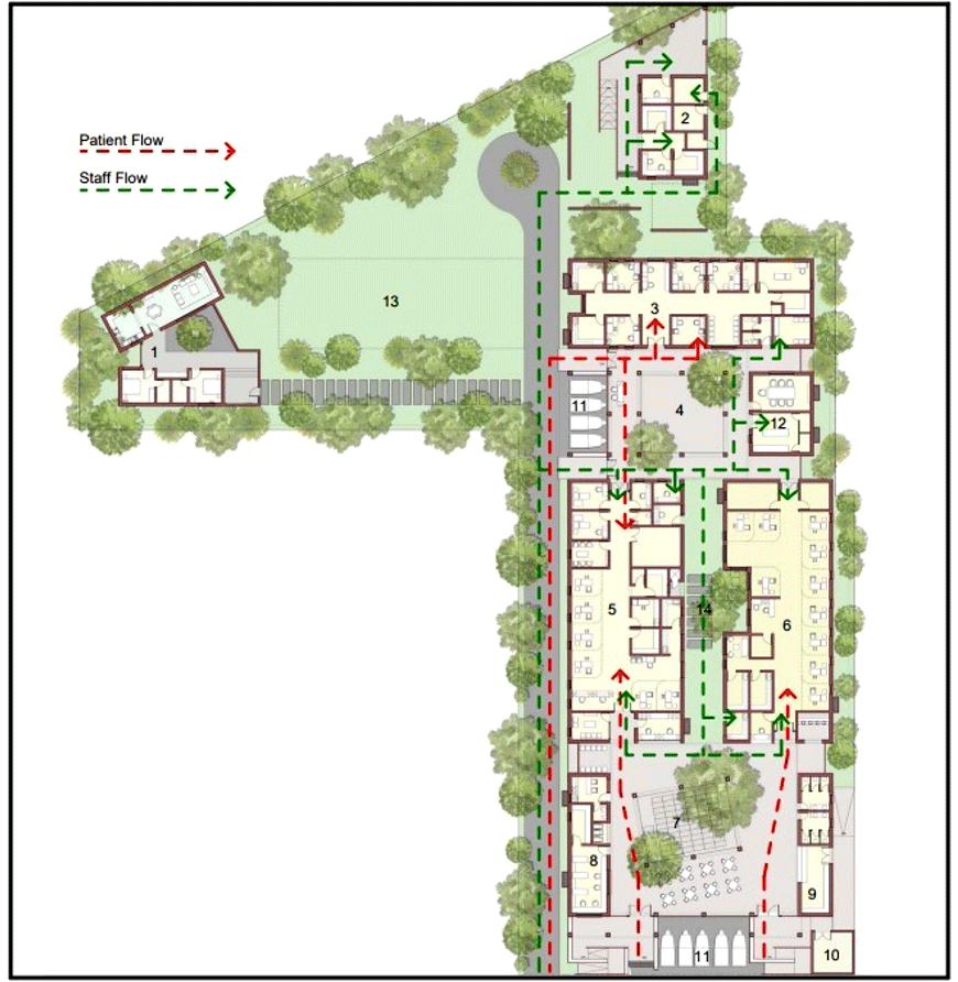 Patient Flow (Red dashed arrows)